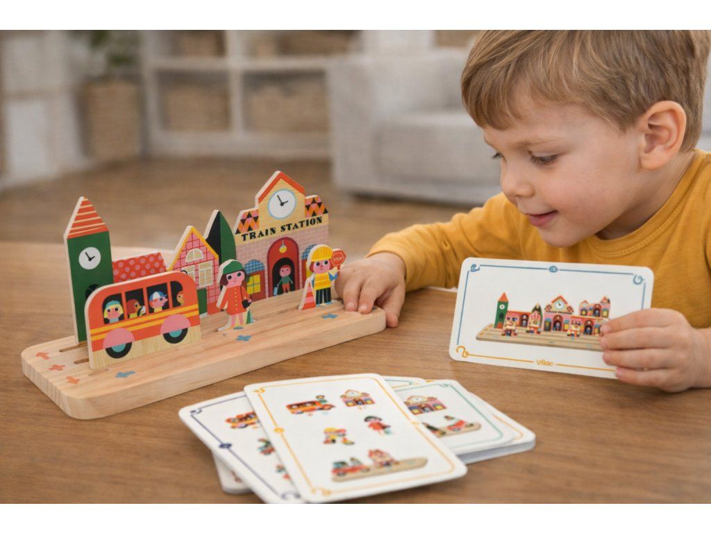 Hra, která děti donutí přemýšlet – ale tak, že je to bude bavit. Podle zadání musí správně postavit město a zapojit logiku, prostorové vnímání i soustředění.
