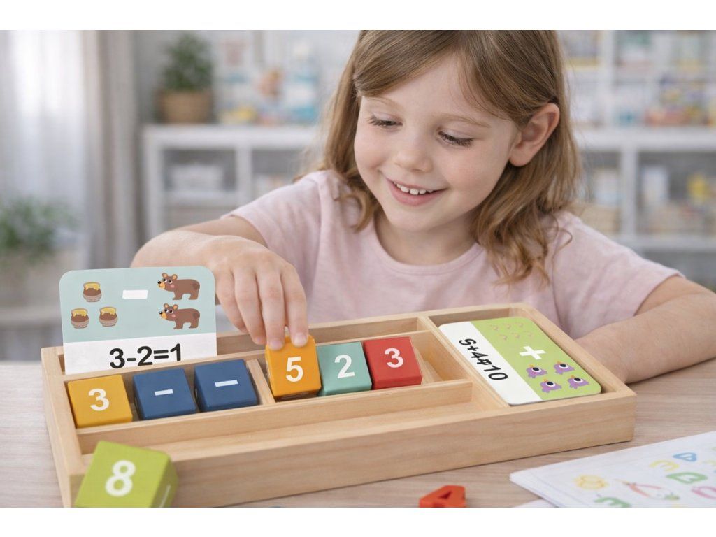 Hravá dřevěná pomůcka, díky které děti pochopí čísla i množství úplně přirozeně – bez nucení, jen skrze skládání a objevování.
